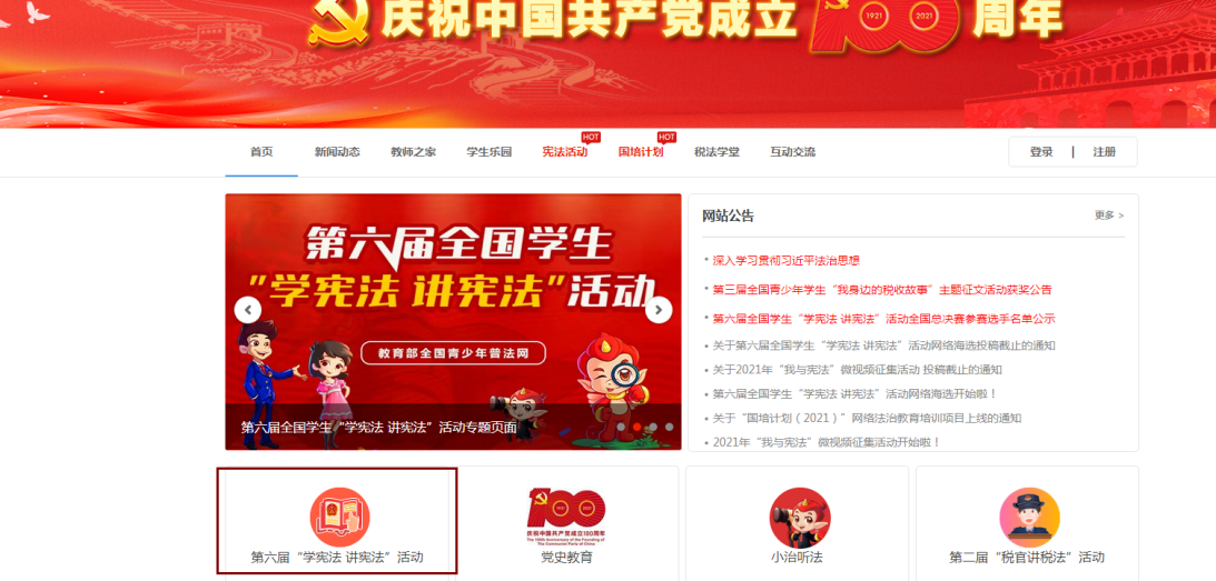 ①网页版点击第六届“学宪法 讲宪法”活动版块后,