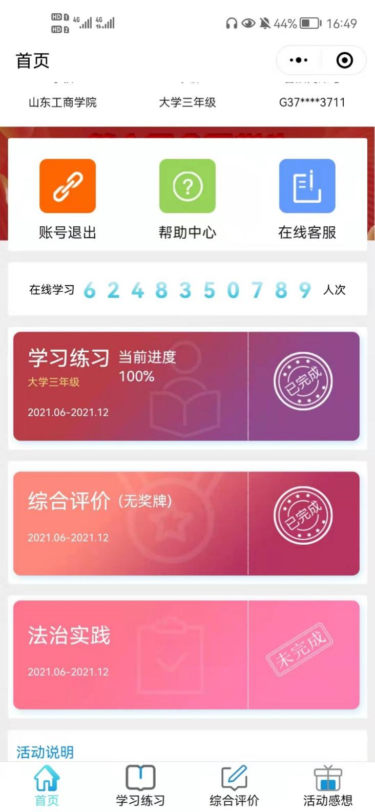 注意:必须使用学校统一下发的账号登录, 否则会影响学习成绩。