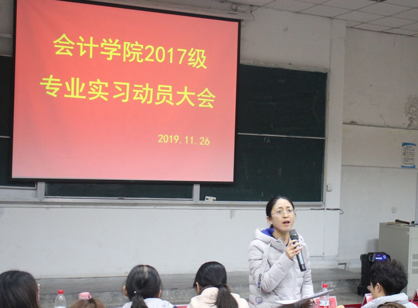 为明确专业实习的意义,引导学院2017级学生做好实习工作,11月26日晚七点,会计学院在二教208教室召开了2017级专业实习动员大会,本次会议由会计学院党总支副书记张海燕主持。