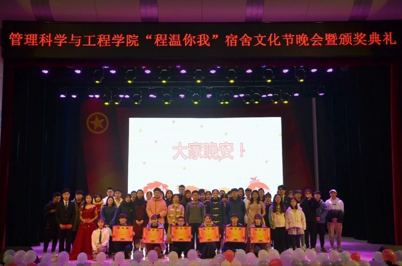 12月7日,管理科学与工程学院于大学生活动中心举办“程温你我”宿舍文化节晚会暨颁奖典礼,2018级、2019级全体学生参加。