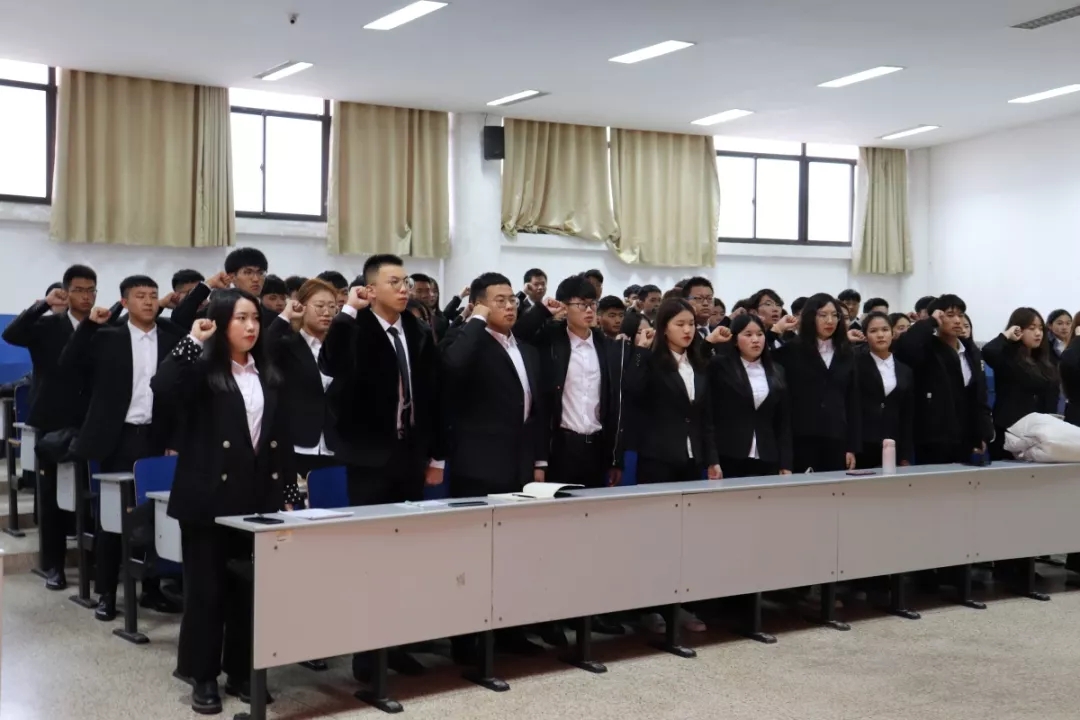 田永康老师讲述了南京大屠杀历史事件,向同学们阐述了自己的看法。他强调班级干部需要具有爱国精神、责任意识、感恩之心,点明班级工作中容易出现的问题,并提出了解决方案。2019级全体班委进行宣誓,体现了当代大学生的热血追求和对班级工作的热情与信心,展现出牢记使命勇于担当的理想信念。