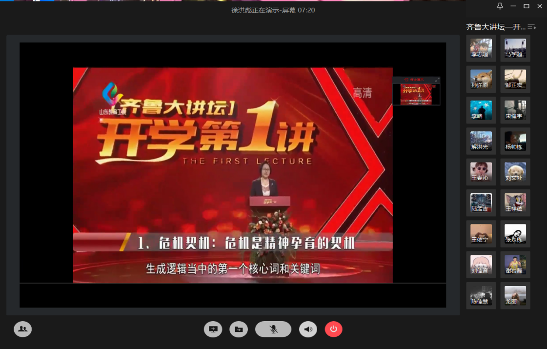 6月5日,为深入贯彻习近平总书记关于坚决打赢疫情防控攻坚战的重要指示精神,管理科学与工程学院于线上组织观看《齐鲁大讲坛——开学第1讲》特别节目,学院全体学生通过企业微信、钉钉、QQ等工具参加。
