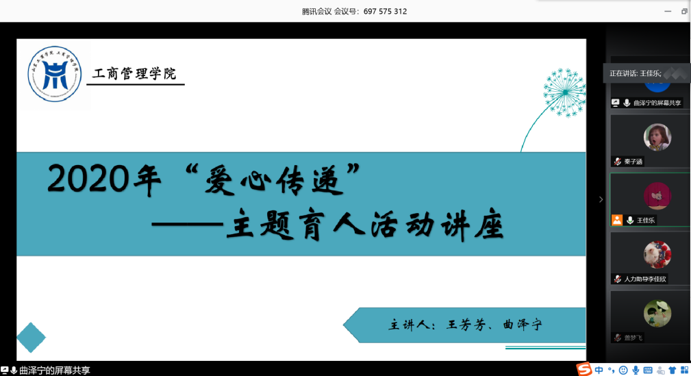 为扎实做好学生资助工作,让同学们更加了解国家相关资助政策,6月12日19:00,通过腾讯会议平台开展线上资助宣传讲座,本次讲座由“资助宣传大使”营销183班王芳芳、工商183班曲泽宁担任主讲人,学院学生积极参与,认真了解资助政策。