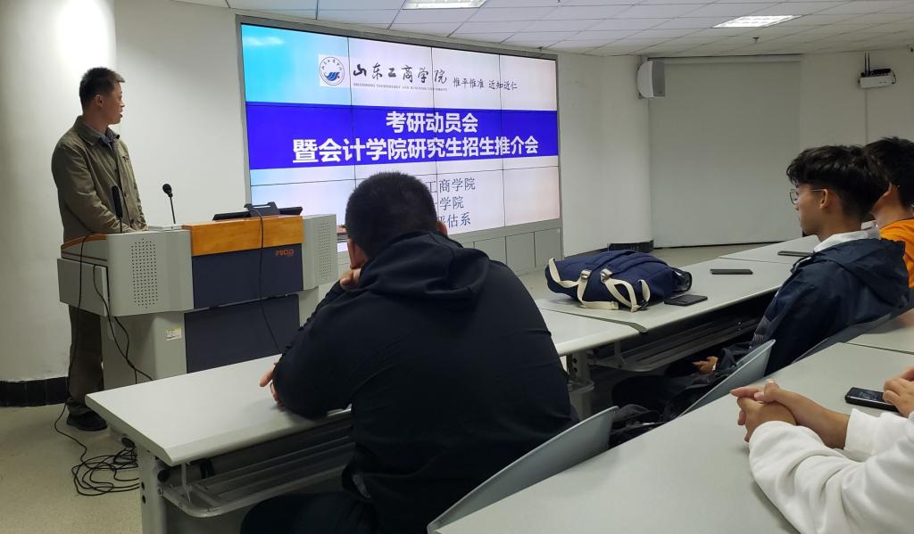 接着是张双鹏博士为同学们讲解资产评估专业考研的相关情况。张博士给大家展示考研相关数据,并从树立正确的考研观、考研对人思维能力的改变、我校的考研招生政策等方面进行介绍,给同学们指明未来学习的方向。
