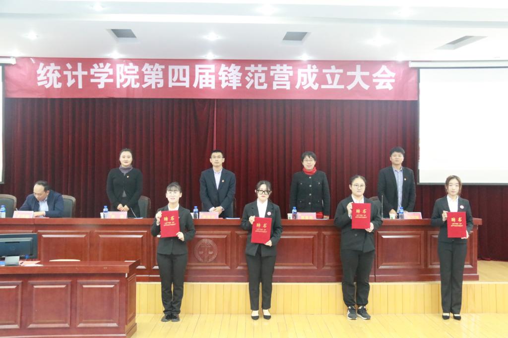 会上,职能部门领导老师为统计学院第四届锋范营主席团成员颁发聘书,统计学院学生党支部书记王俊梅宣读第四届锋范营主席团及部长名单,第三届锋范营主席董明辉对上一年的工作做了总结汇报,第四届锋范营主席马琳娜发表了就职演讲。团委宣传部副部长张同瑞作为学校职能部门老师代表致辞。