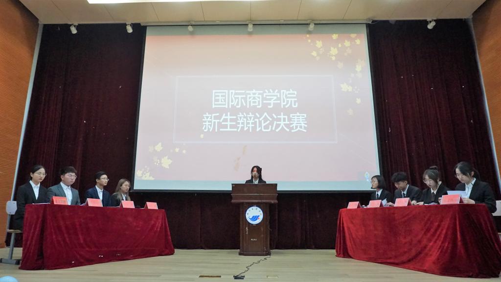 | 国际商学院新生辩论赛决赛中双方辩手激烈交锋。 |