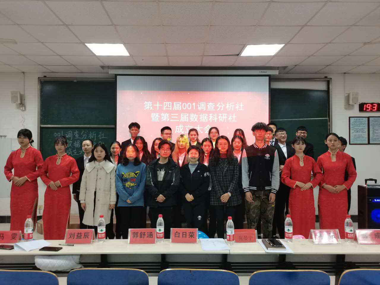 10月30日,统计学院在第五教学楼举办第十四届001调查分析社暨第三届数据科研社成立大会。