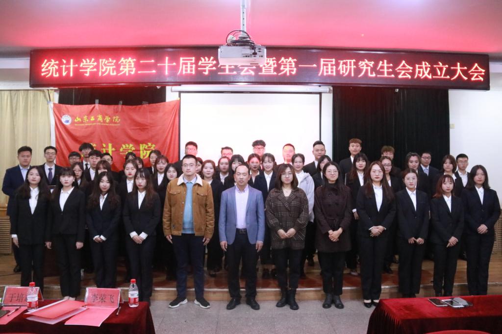 11月6日,统计学院第二十届学生会暨第一届研究生会成立大会在大学生活动中心第三报告厅举行。我院党总支副书记于培超、学生党支部书记王俊梅、辅导员李荣飞、张晏宁,各校级学生组织主席,各二级学院学生会主席,我院锋范营主席、各社团社长、学生会全体成员200余人参加。
