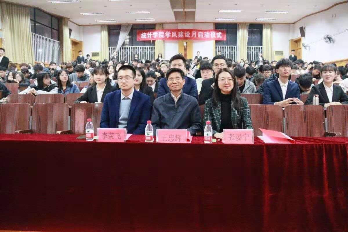 11月16日,统计学院在第二教学楼举办学风建设月启动仪式,我院副院长王忠辉、辅导员李荣飞、张晏宁,学生会主席团、锋范营主席团及2020级全体学生300余人参加。
