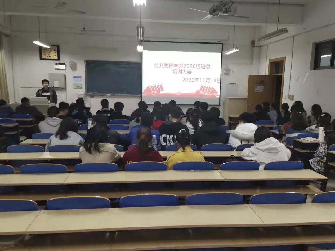 11月13日,公共管理学院(公益慈善学院)在第四教学楼开展新生班委培训,主讲人为我院优秀学生干部、行政181班长周子豪,我院2020级班委48人参加。