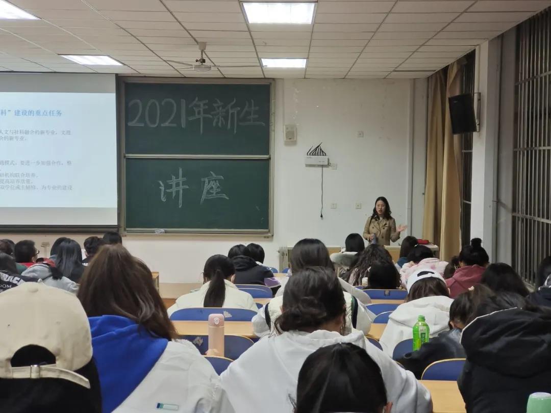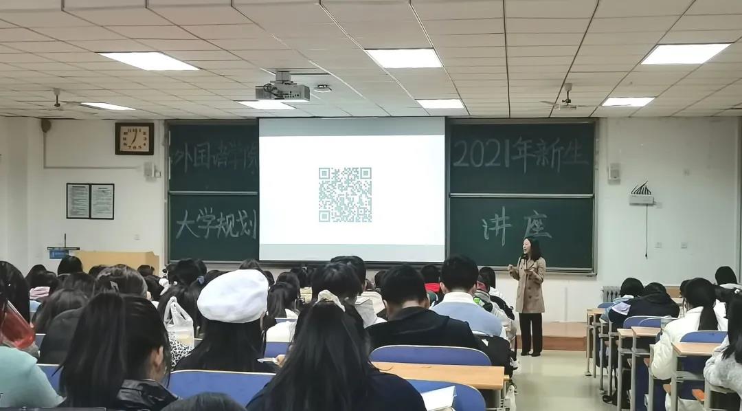 10月23日,外国语学院在逸夫楼二教举办2021级新生大学规划讲座,英外系主任张丽华老师主讲,2021级新生300余人参加。