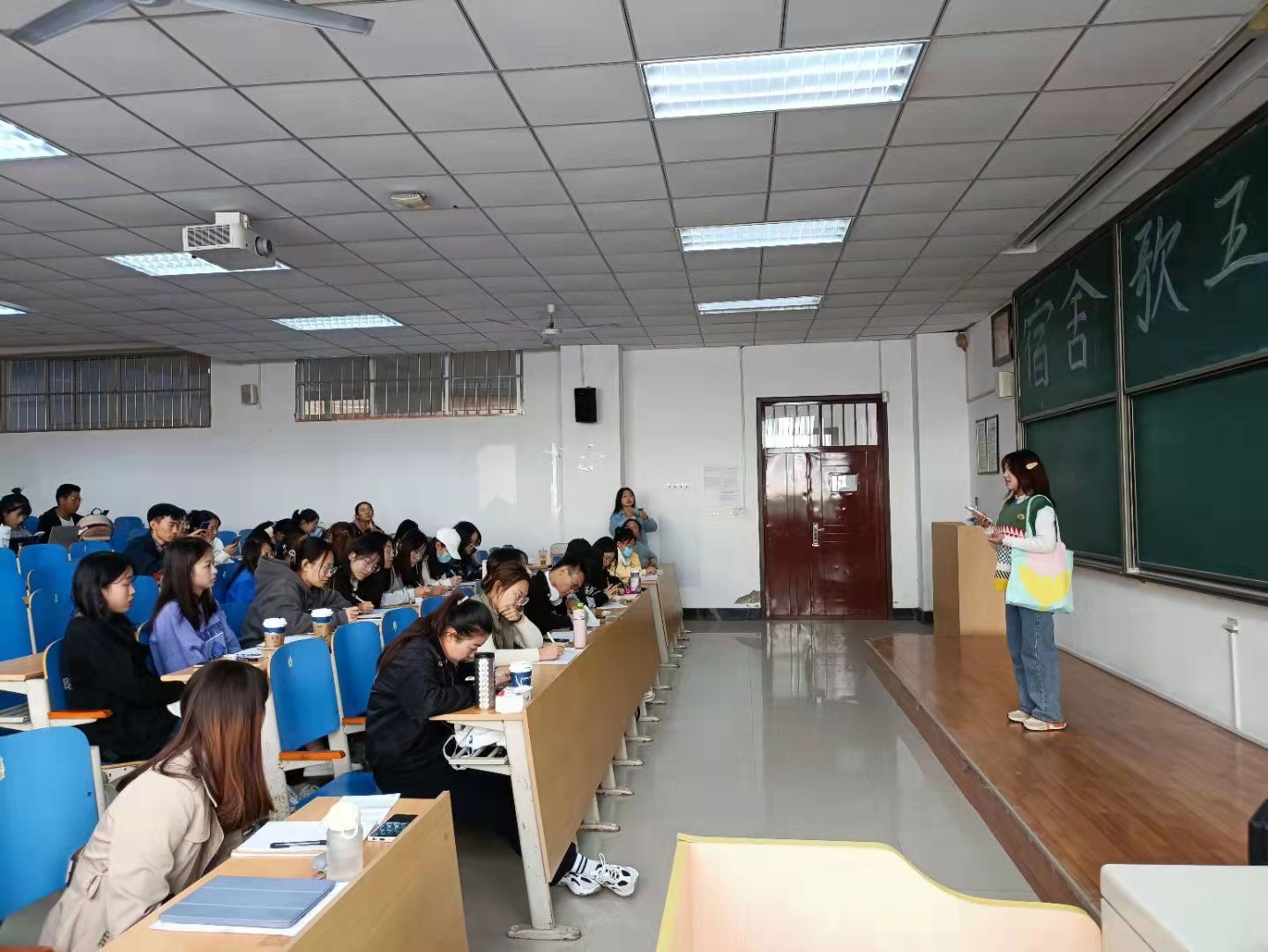 10月23日,外国语学院在逸夫楼二教举行宿舍歌王初赛,2021级新生各宿舍代表参与,丰富了校园文化生活,营造了积极向上的宿舍文化氛围。