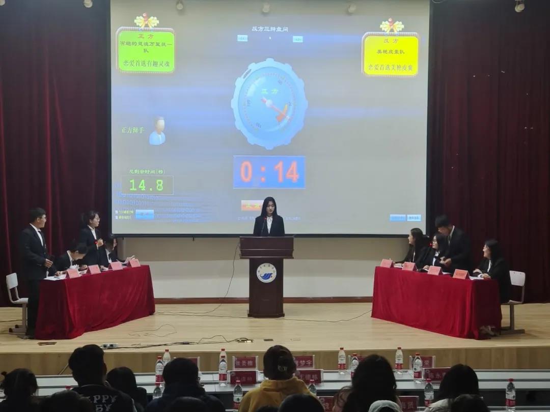 活动伊始,王德栋老师上台致辞,鼓励新生踊跃参与辩论比赛,开拓思维,展现自我。在比赛环节中,双方辩手相继围绕“恋爱首选美颜皮囊还是有趣灵魂”和“灾难中的自私是否应该受到谴责”展开了辩论。双方辩手就多个论点展开了密集攻防,现场气氛紧张激烈。随后,我院辩论队队长薄梦宇进行现场点评,对辩手的优异表现给予了肯定。活动最后,比赛评委为获奖辩手颁奖并合影留念。