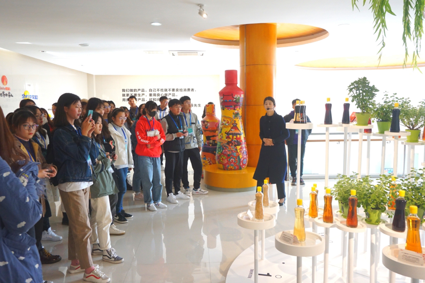 活动中,负责人先带领团队成员参观欣和企业公司的发展历程,观看企业宣传片,了解企业品牌文化。除此之外,团队成员还参观酱油等调味品的生产、酿造、包装车间以及产品的运输过程。参观企业的过程中,同学们还品尝了酱油醋冰激凌、水果泡醋等企业特色小吃。这次短暂而充实的参观学习,同学们在增强专业认知的同时也加深了对企业运营模式及企业未来发展方向的认识。