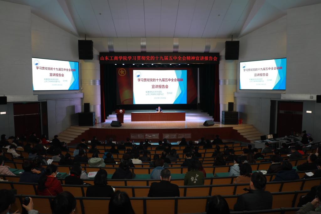 11月30日,学校学习贯彻党的十九届五中全会精神宣讲报告会在艺术中心一楼礼堂举行。山东省属高校学习贯彻党的十九届五中全会精神宣讲团成员、学校党委书记白光昭作宣讲报告。纪委书记张宗伟主持报告会。