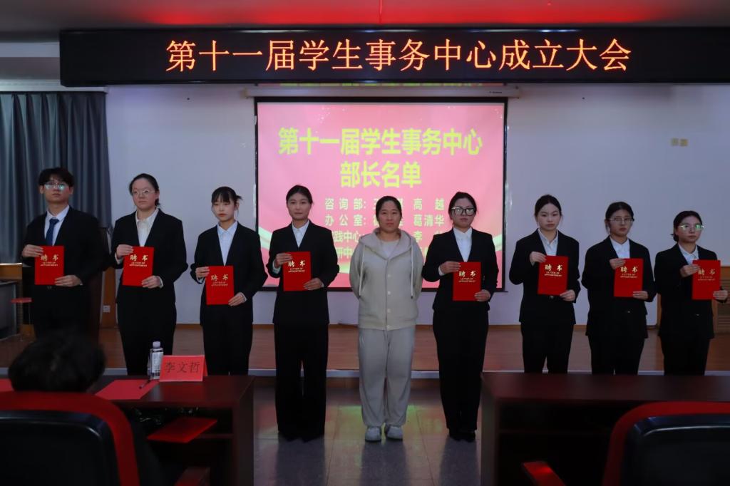本次成立大会在热烈的氛围中圆满落幕。新征程已然开启,第十一届学生事务中心全体成员必将牢记“育人为本,服务学生”的宗旨,携手共进,为学校发展贡献青春力量。