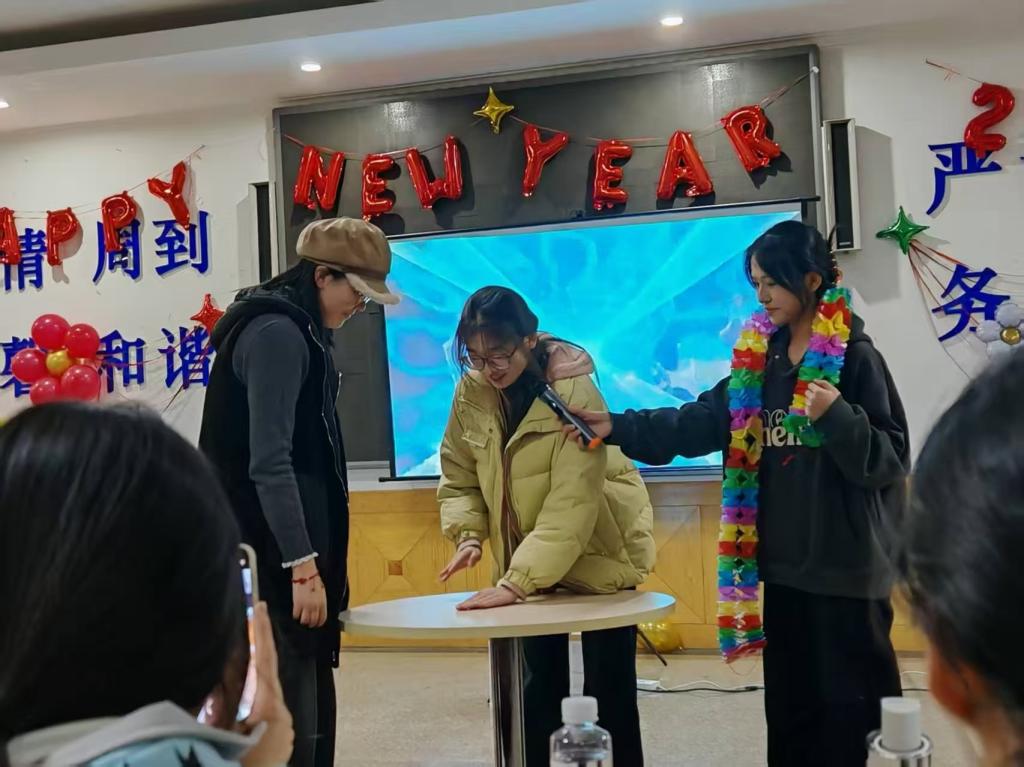 晚会期间,游戏环节更是将欢乐氛围推向了高潮。“听歌识曲”“抢凳子”“方言传声筒”等趣味游戏轮番上演,大家全神贯注、踊跃参与,听歌识曲时的秒答比拼,抢凳子时的你争我夺,方言传声筒里的爆笑“传话”,引得现场笑声与欢呼声此起彼伏。在一轮轮精彩互动中,友谊悄然升温,欢乐也在每个人的心头久久回荡。